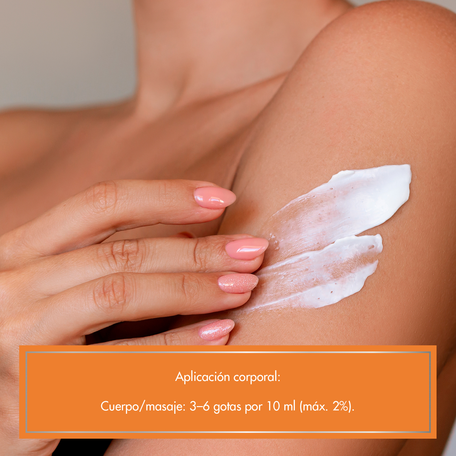 En caso de piel sensible usar siempre diluido en un aceite base.