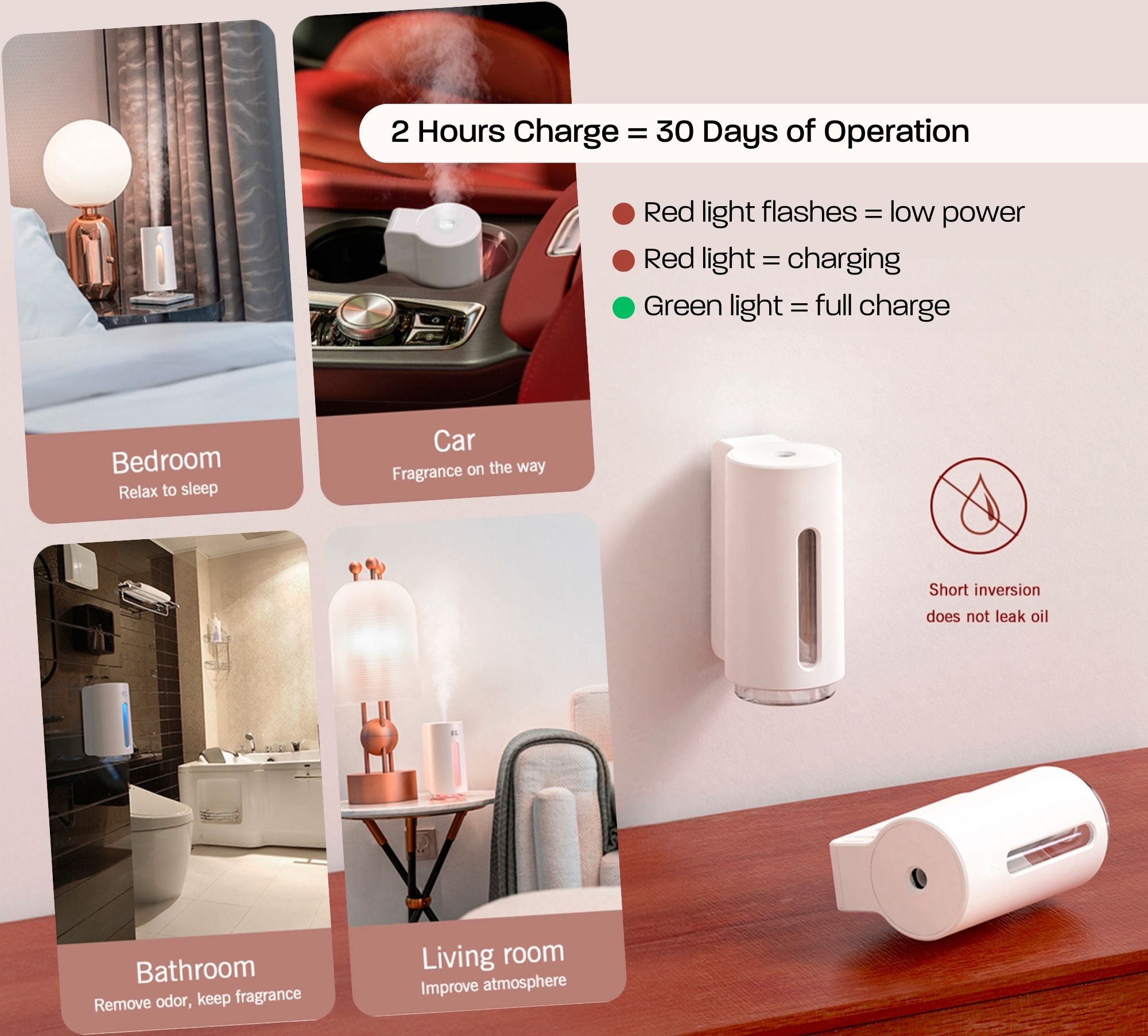 Enhance your aromatherapy experience with our wireless Essential Oil Diffuser. Enjoy natural essences anywhere and anytime. Perfect accessory on your desk or in your car. Preserves the therapeutic properties of your essential oils in your environment.