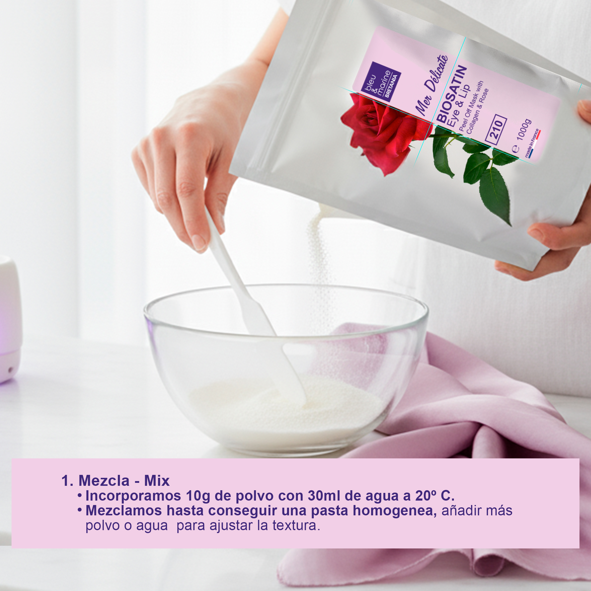 Mezclar 10 g de mascarilla en polvo con 30 ml de agua a 20 ºC.