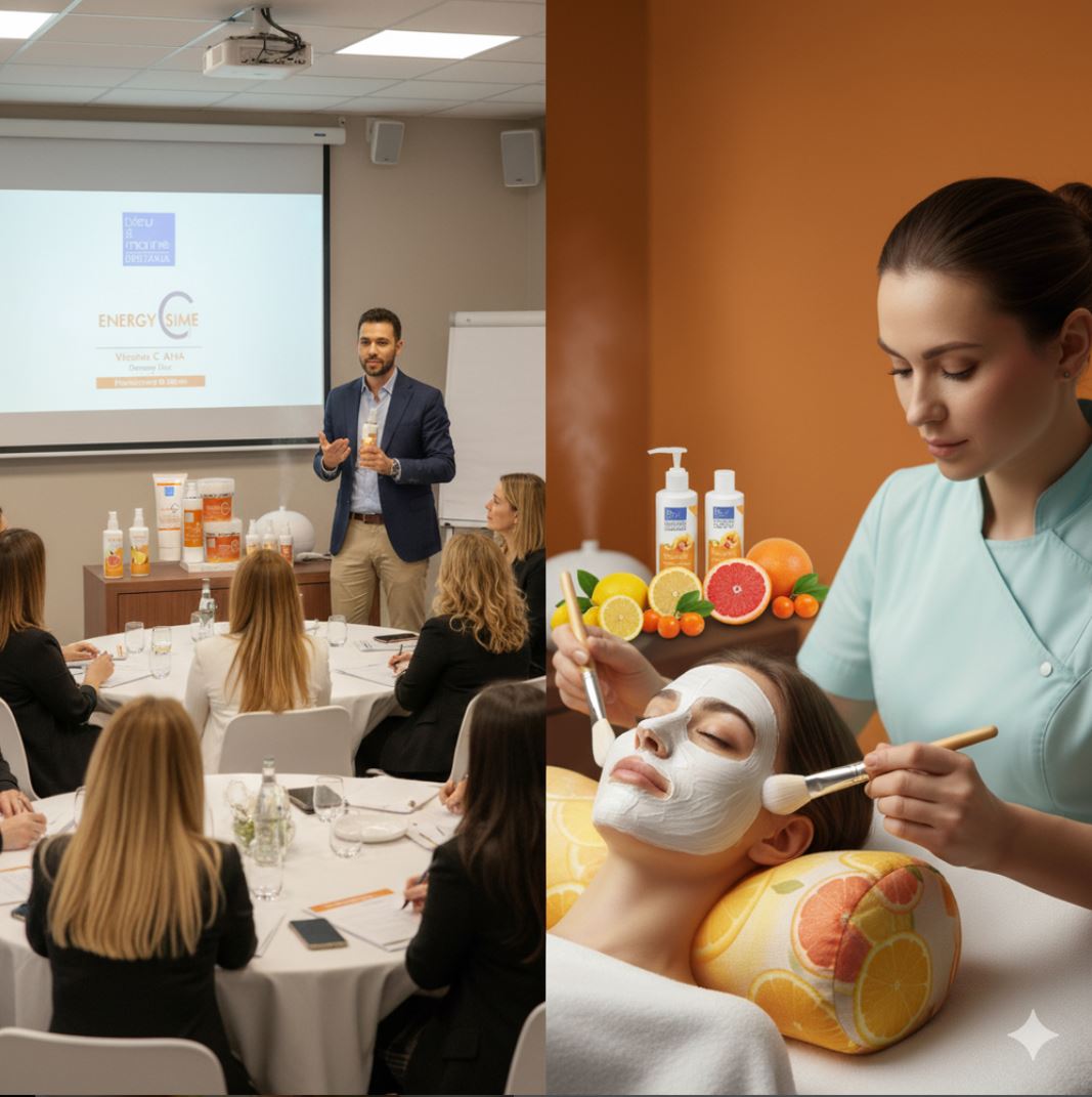 El Tratamiento Facial Profesional Aclarante y AntiEdad con Vitamina C y AHAs EnergyCsime bleu & marine Bretania KP500 es una solución completa para centros de estética que buscan un protocolo de cabina eficaz, rentable y fácil de aplicar sobre pieles apagadas, con manchas o con textura irregular. La ficha oficial lo define como el ritual profesional de Vitamina C + AHAs para iluminar, unificar el tono y suavizar arrugas, con fabricación en Bretaña, Francia.